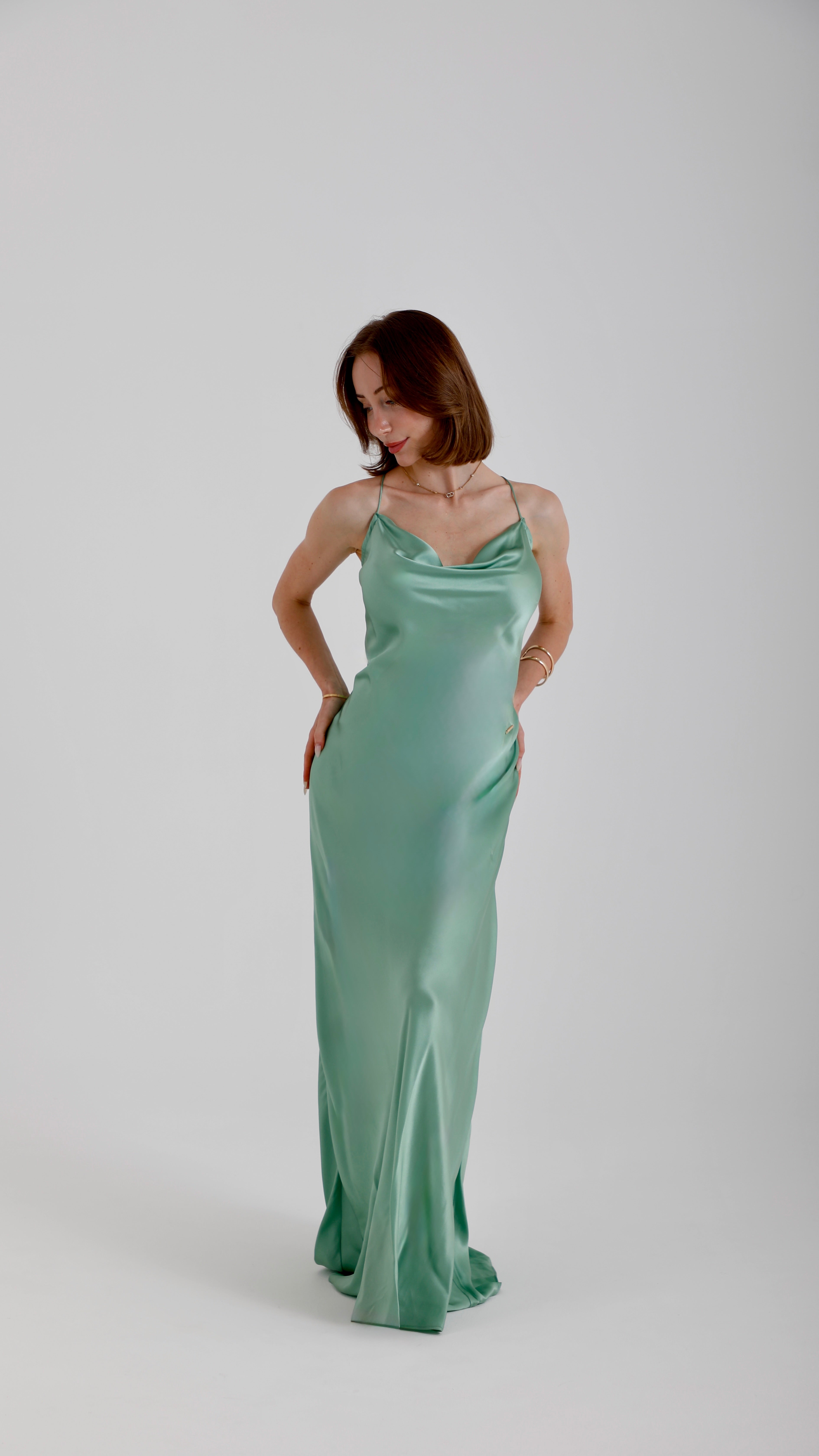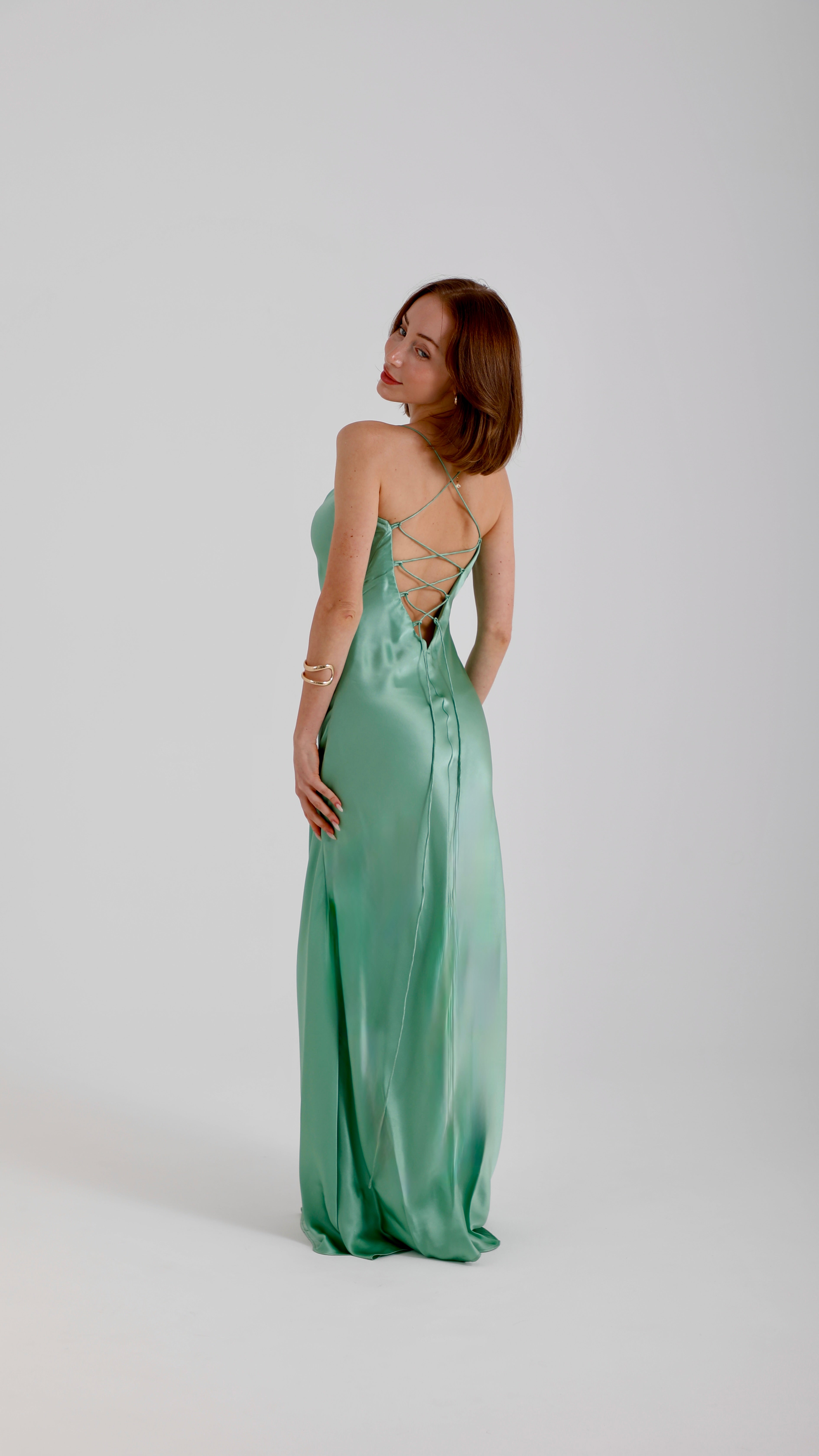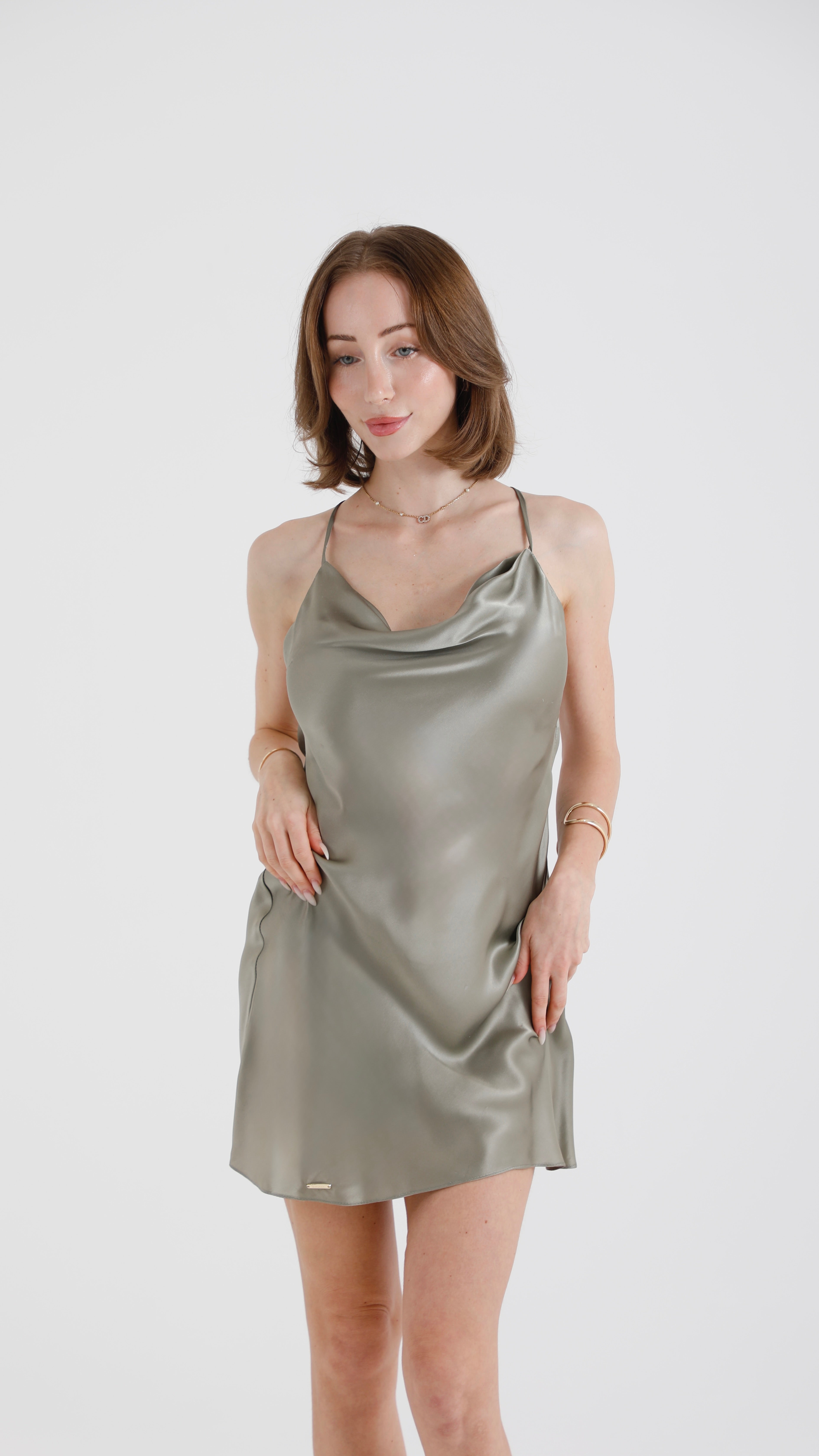 Silk Mini Dress – Olive Green