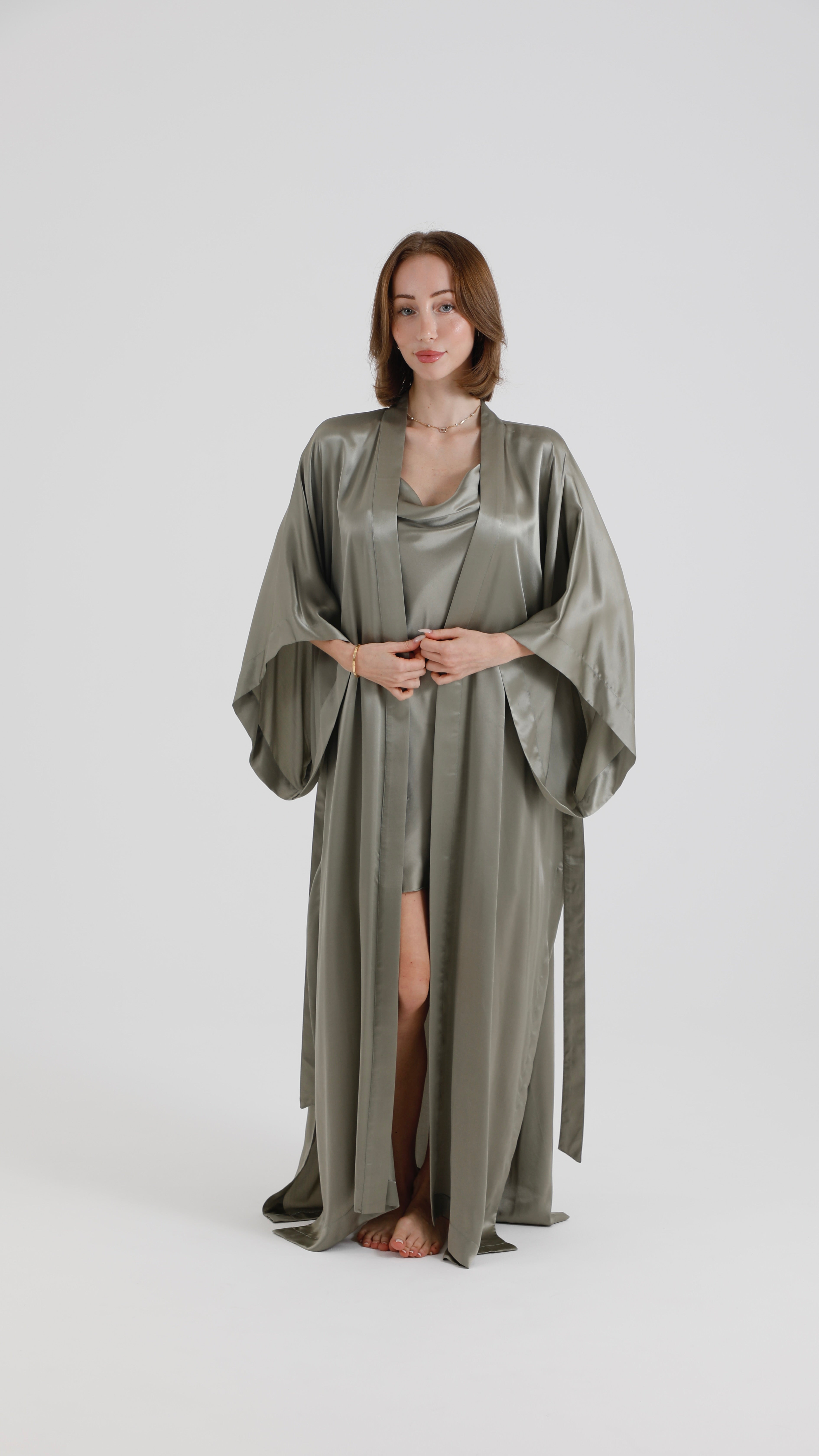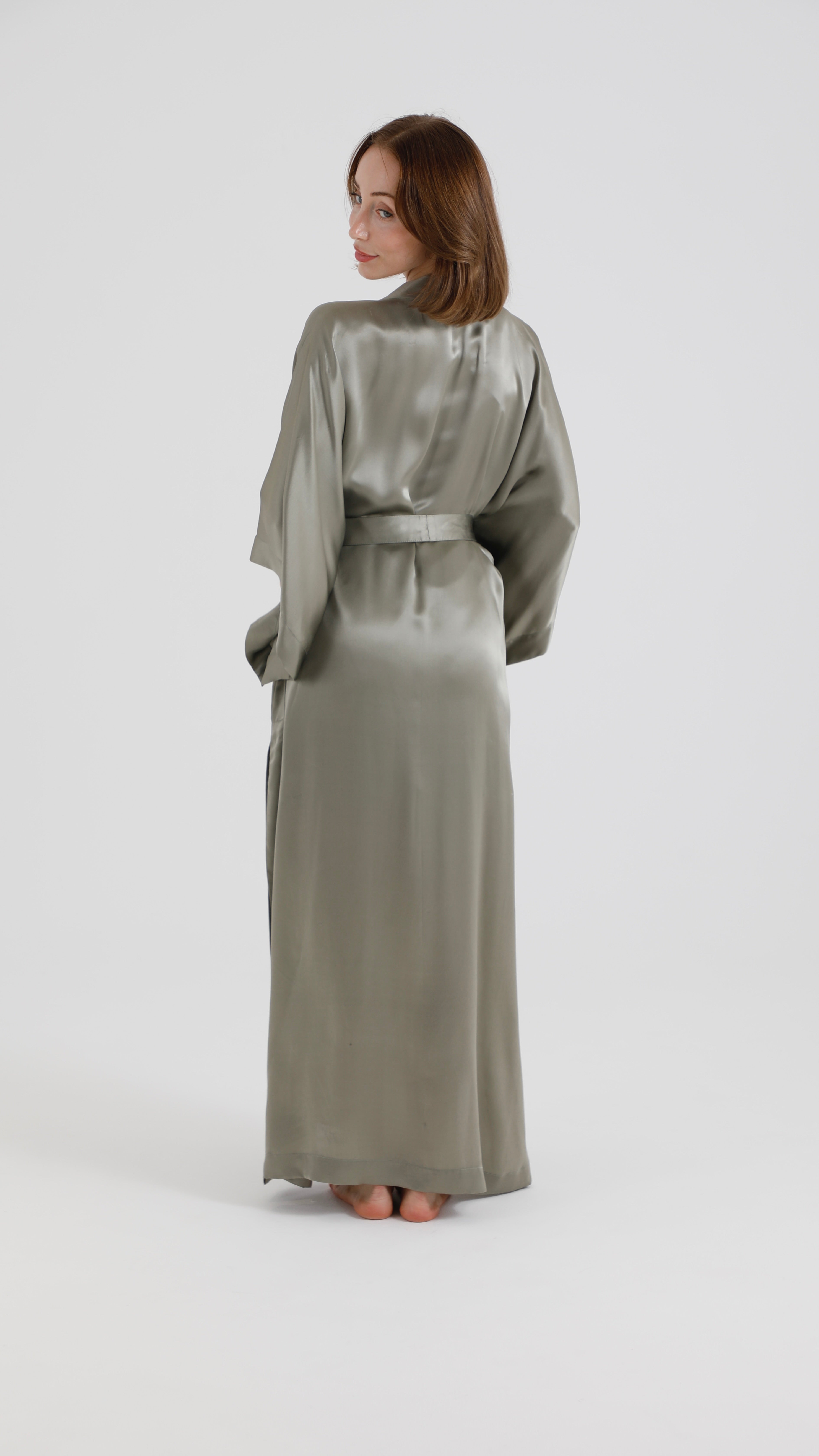 Silk Kimono – Olive Green