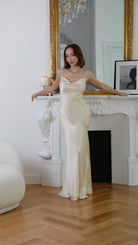 Timeless and romantic, the Silk Lace Back Maxi Dress in Buttermilk is the epitome of graceful elegance. With its soft hue and delicate lace-back detail, this piece brings a sense of refined femininity to weddings, soirées, or any elevated moment.
