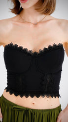 Structured yet soft, the Kiya Corset Top in Midnight Black combines romantic lace details with a flattering cotton base. Designed to sculpt the waist while maintaining comfort, it blends vintage femininity with modern ease—perfect for layering or standing alone.