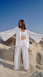 Light and elevated, the Wide-Leg Pants in Ecru White deliver a clean, minimal look with modern elegance. Their soft hue and fluid shape make them the ideal piece for polished daytime dressing or a refined weekend mood.